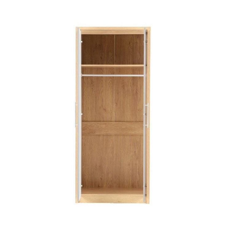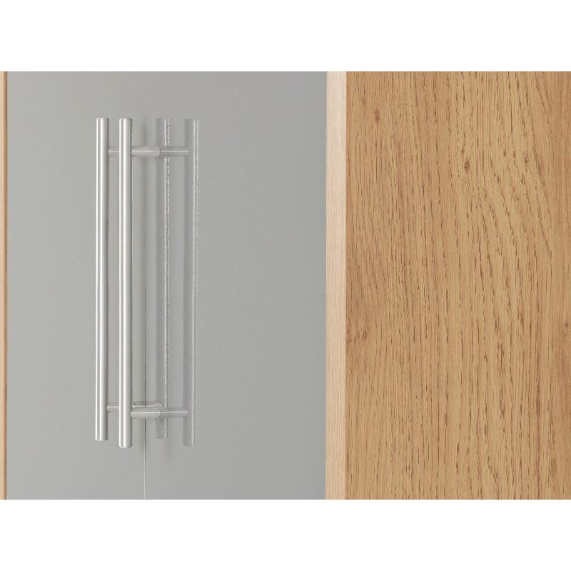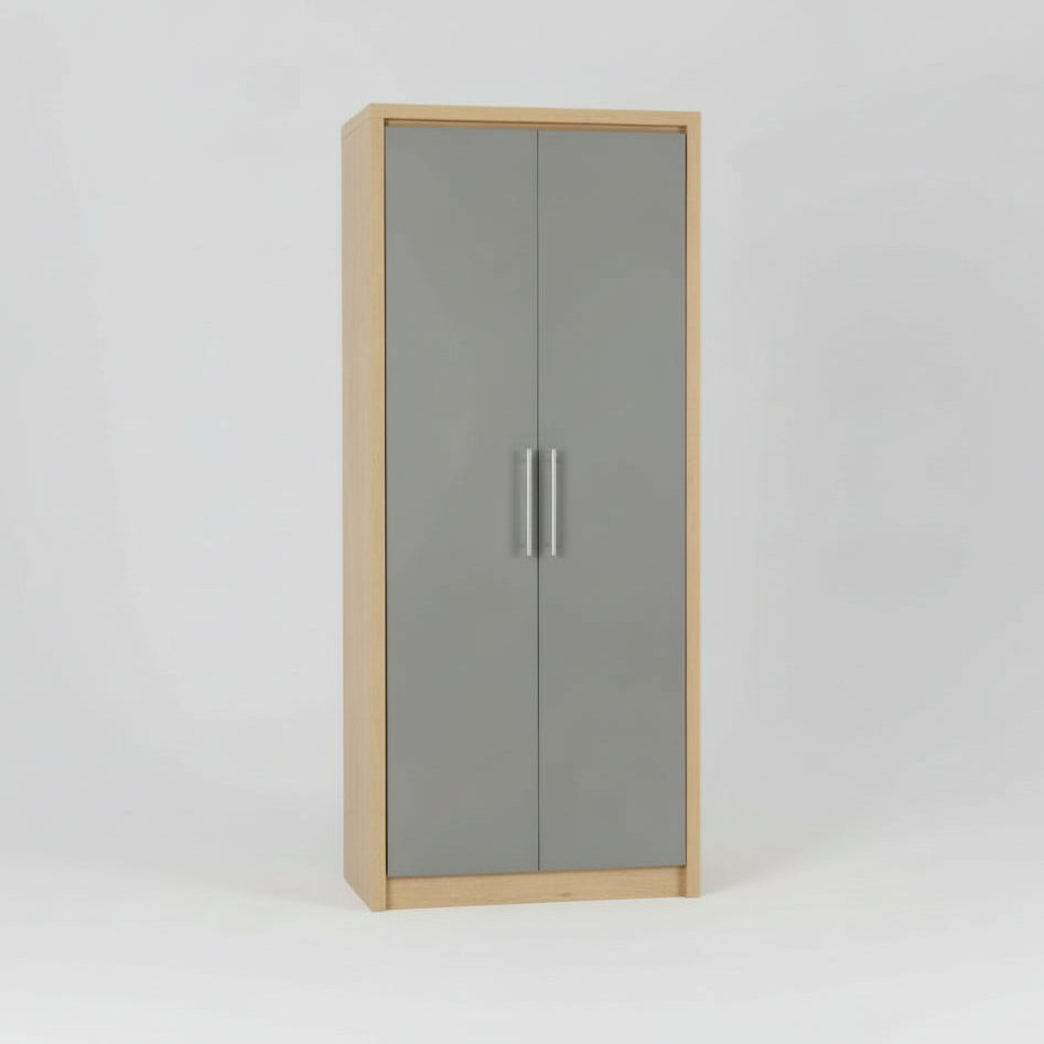 This elegant two-door wardrobe marries contemporary design with generous storage functionality. Crafted from quality MDF with oak veneer, the grey high-gloss finish creates a sophisticated focal point that integrates seamlessly into modern bedroom interiors. The floor-mounted construction provides stability and security, whilst the substantial internal capacity addresses serious storage demands. An expertly engineered piece that prioritises both aesthetic refinement and practical organisation for discerning homeowners.