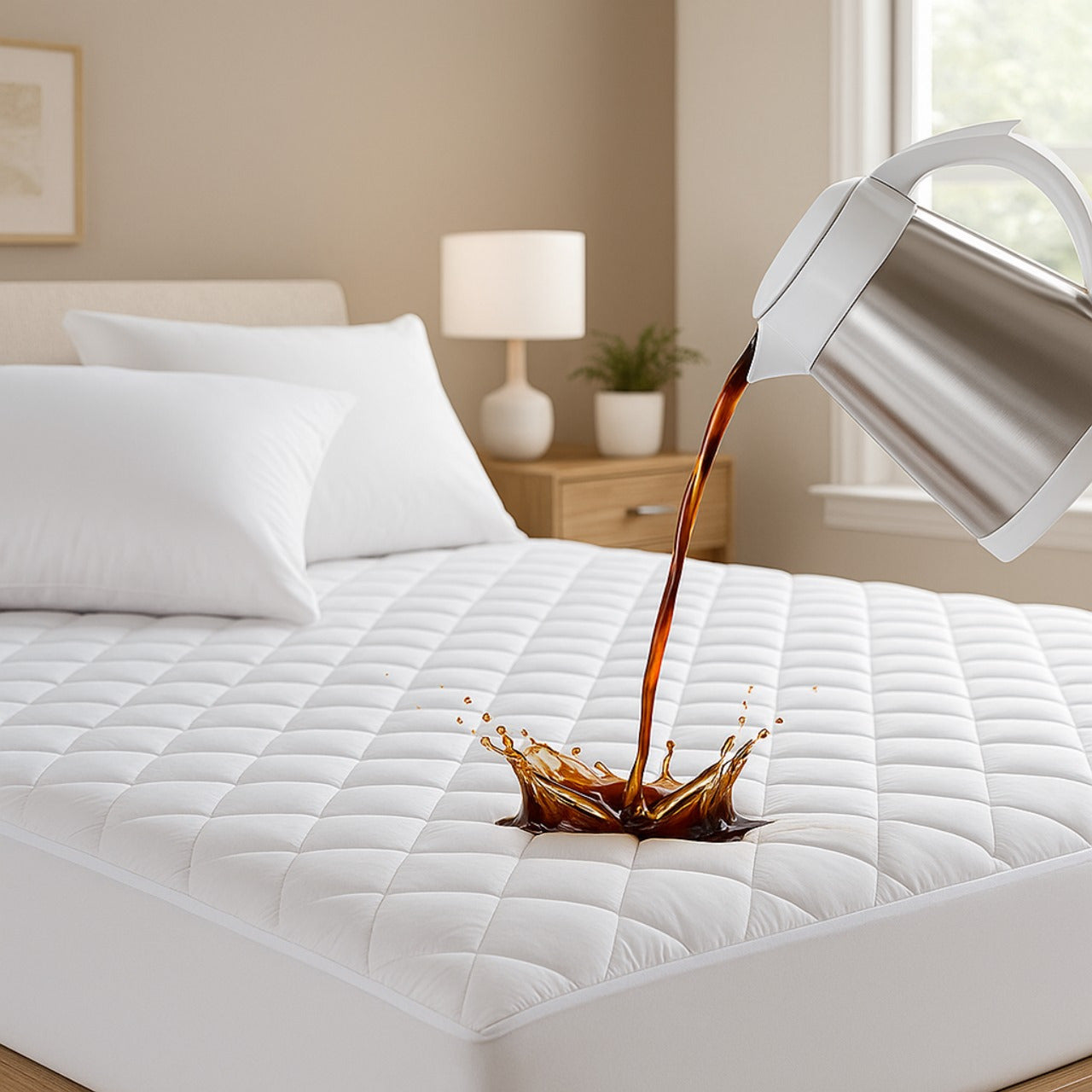 Protect your mattress with this premium waterproof protector, engineered to shield against moisture, allergens, and bed bugs. Crafted from a breathable blend of 40% bamboo and 60% polyester, it delivers a soft, quilted surface that resists wear while maintaining comfort. The deep 30cm skirt fits most standard mattresses securely, with elastic-bound corners for effortless application and removal. Waterproof technology guards against urine, sweat, and spills without trapping heat or odour. Machine washable on a gentle cycle, it's designed for practical, everyday protection that doesn't compromise on feel.