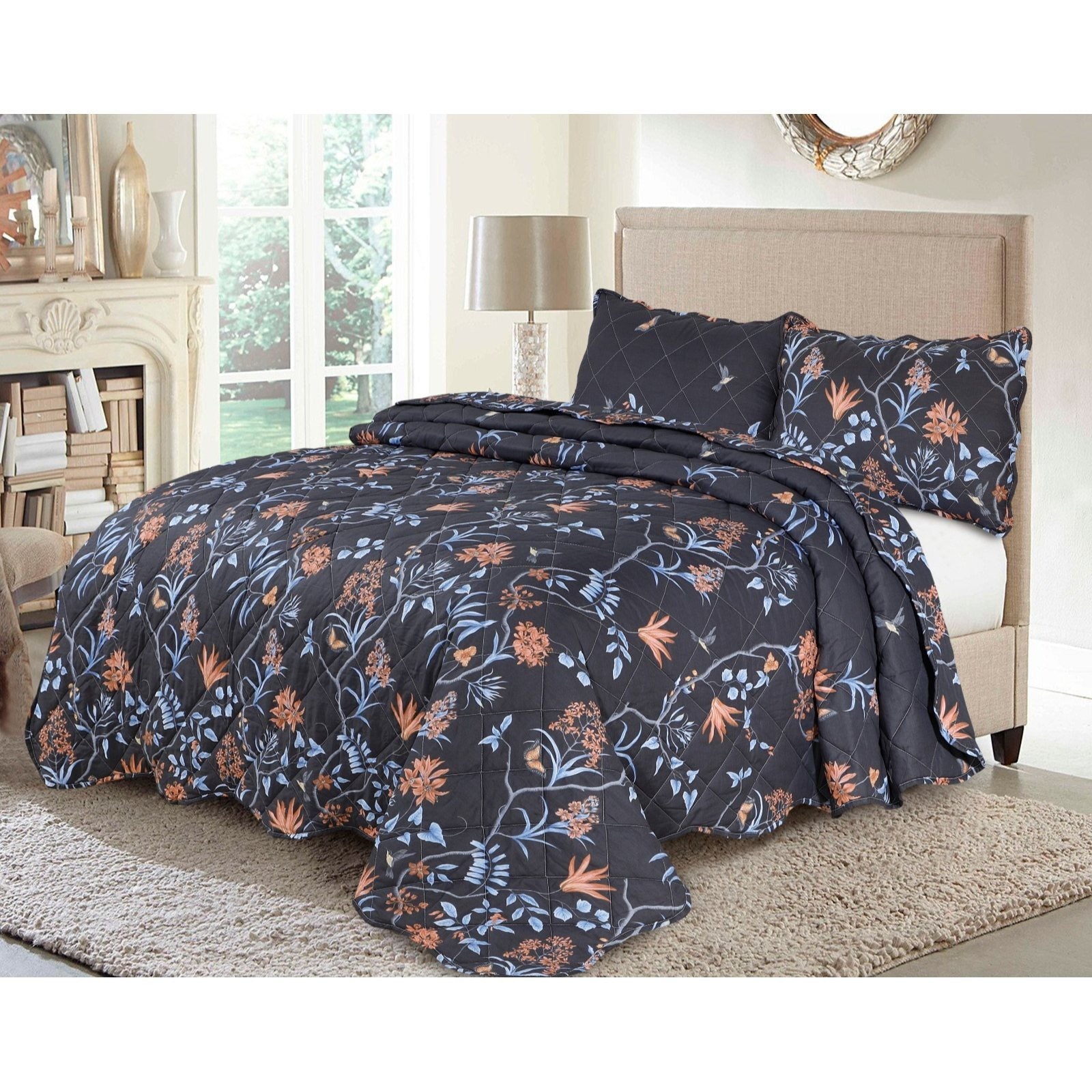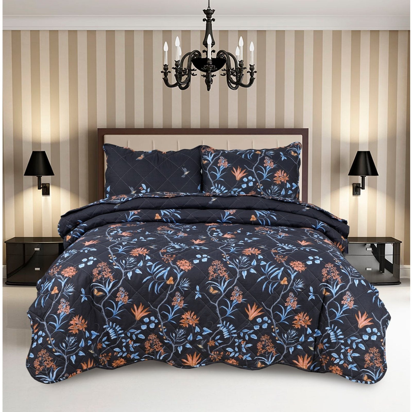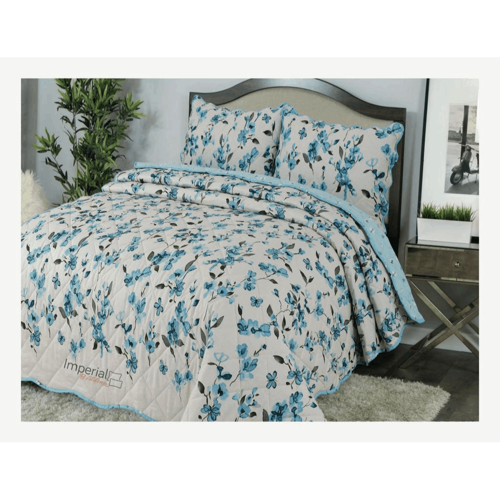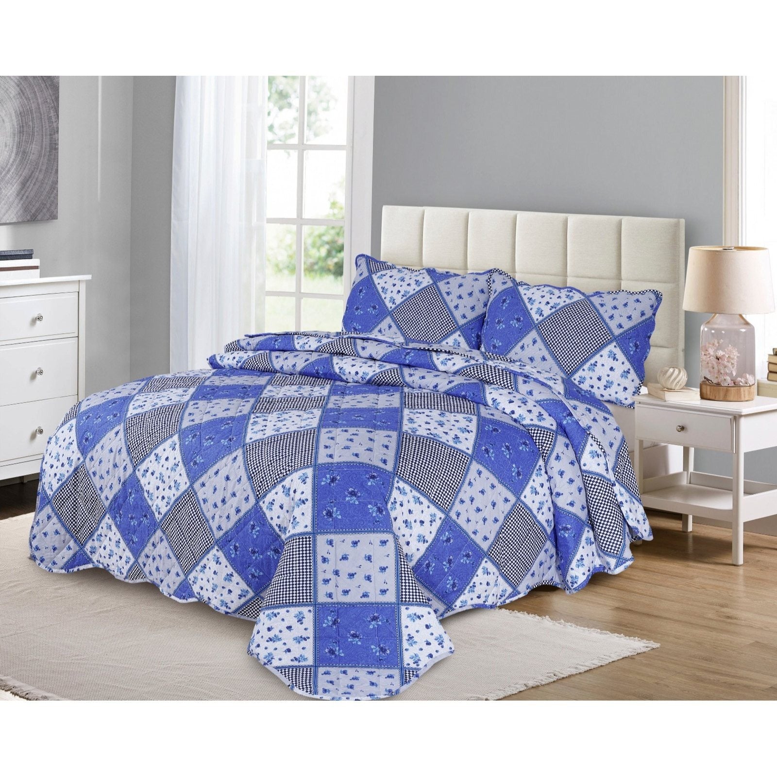 This 3-piece luxury patchwork reversible bedspread set features a quilted throw with printed floral designs, crafted from 100% virgin polyester with a soft, breathable 50/50 polycotton outer cover for comfortable all-season use. it includes one bedspread and two matching pillowcases. The set is machine washable and tumble dryable on low heat, ensuring easy care. Finished with meticulous stitching, it adds a modern touch to any bedroom while providing durable quality and attractive color options. Note: slight size and color variations may occur.