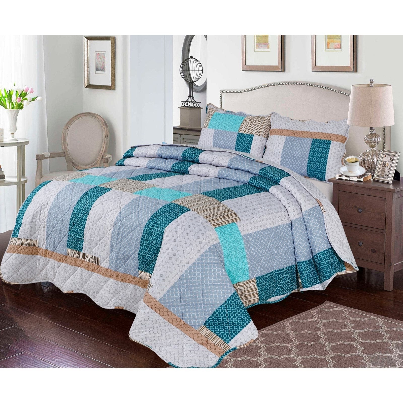 Reversible Quilted Patchwork Bedspread with Pillowcases