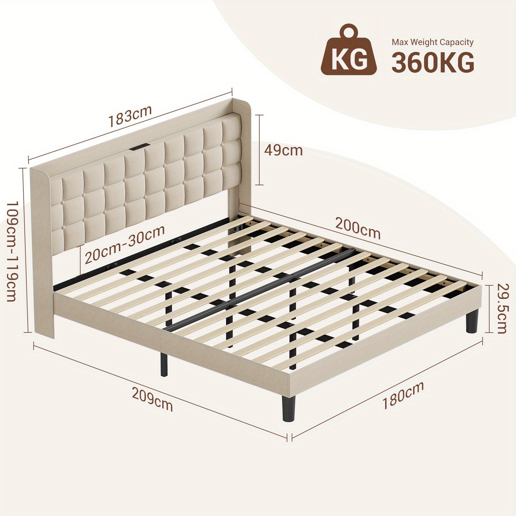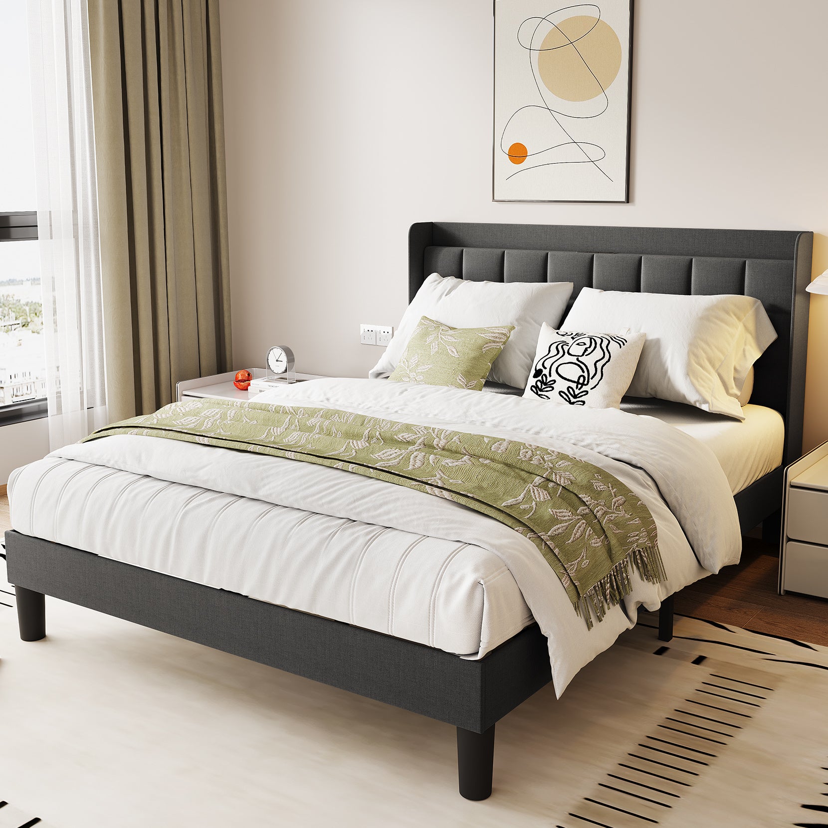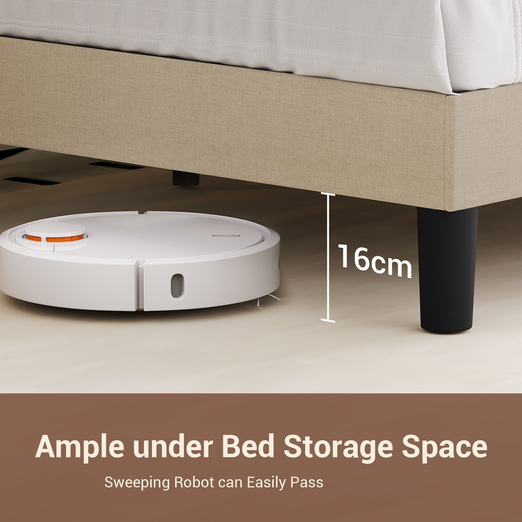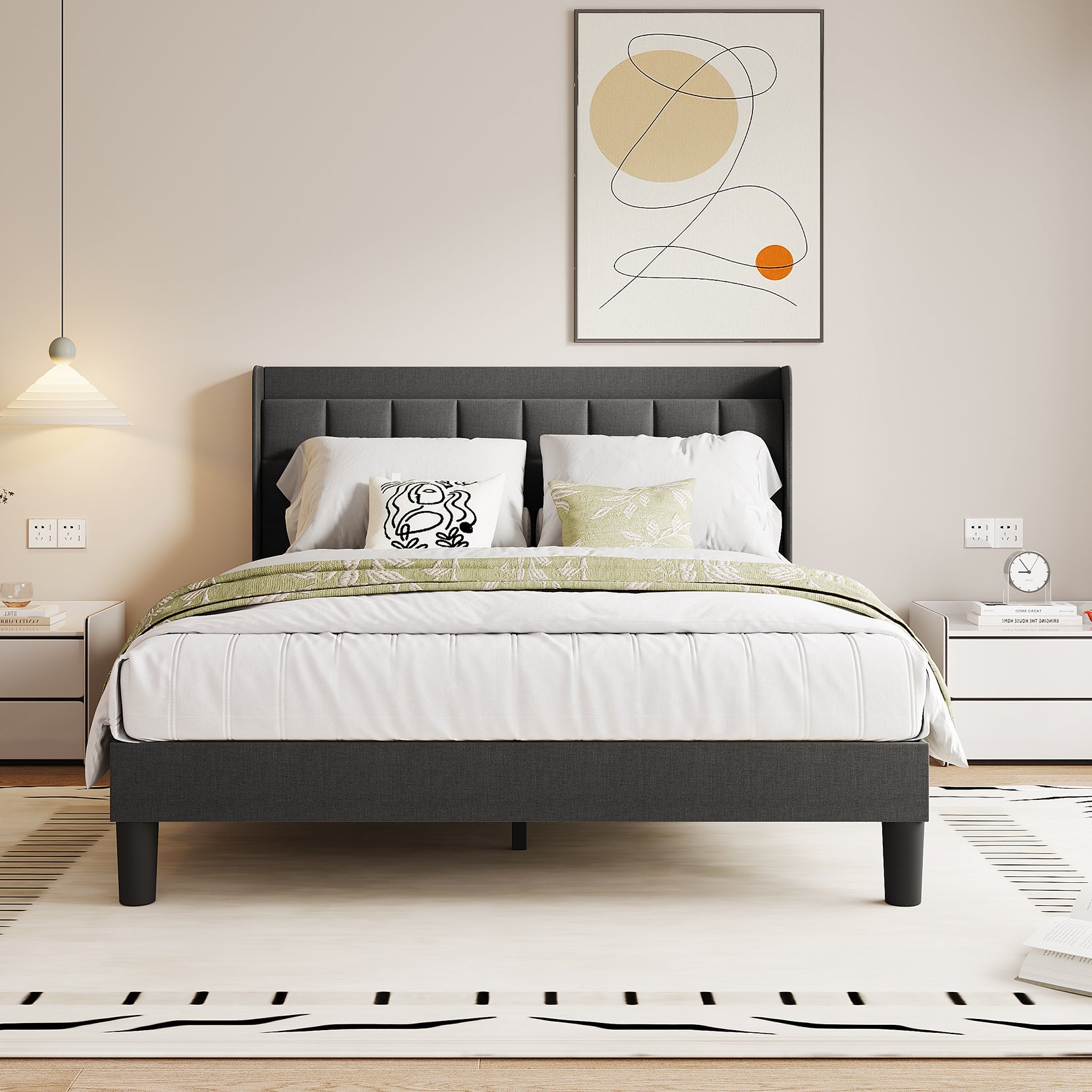 This modern linen-upholstered platform bed frame combines breathable linen fabric with high-density foam padding for superior comfort and support. Its sturdy wooden structure, supported by eight solid legs and twelve durable slats, ensures stability and can hold up to 800 pounds. The adjustable headboard offers three height settings to accommodate mattress thicknesses between 8 and 14 inches, perfect for reading, watching TV, or relaxing. Designed for easy assembly and contemporary small-space living, this bed frame requires no box spring, blending practicality with sleek, durable craftsmanship.