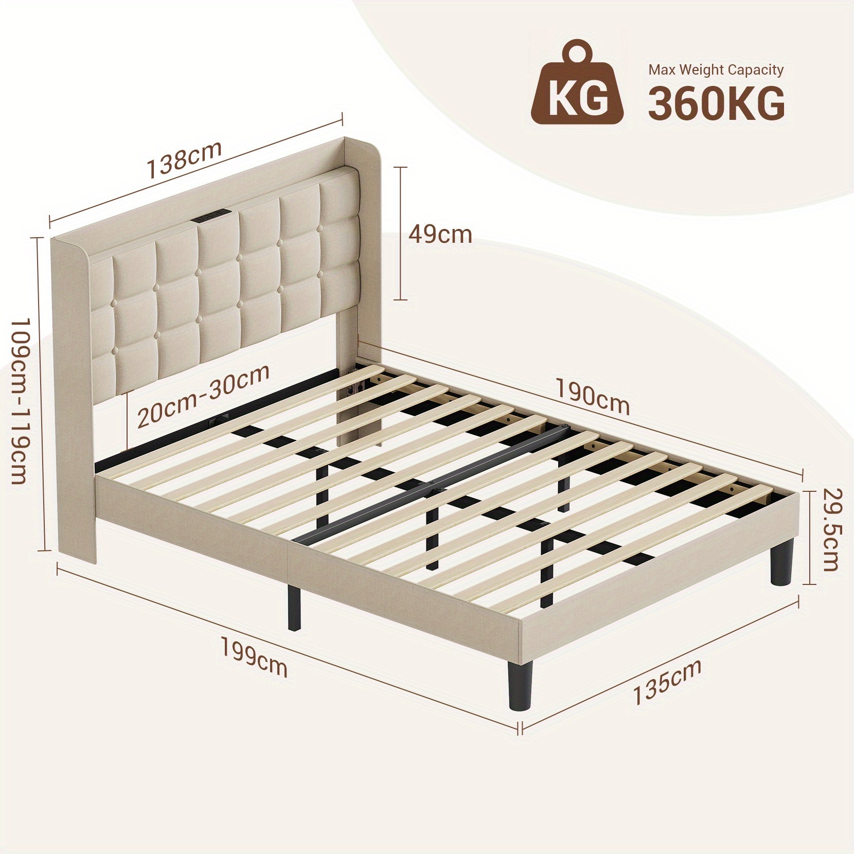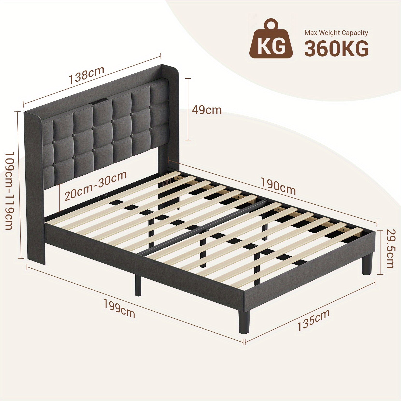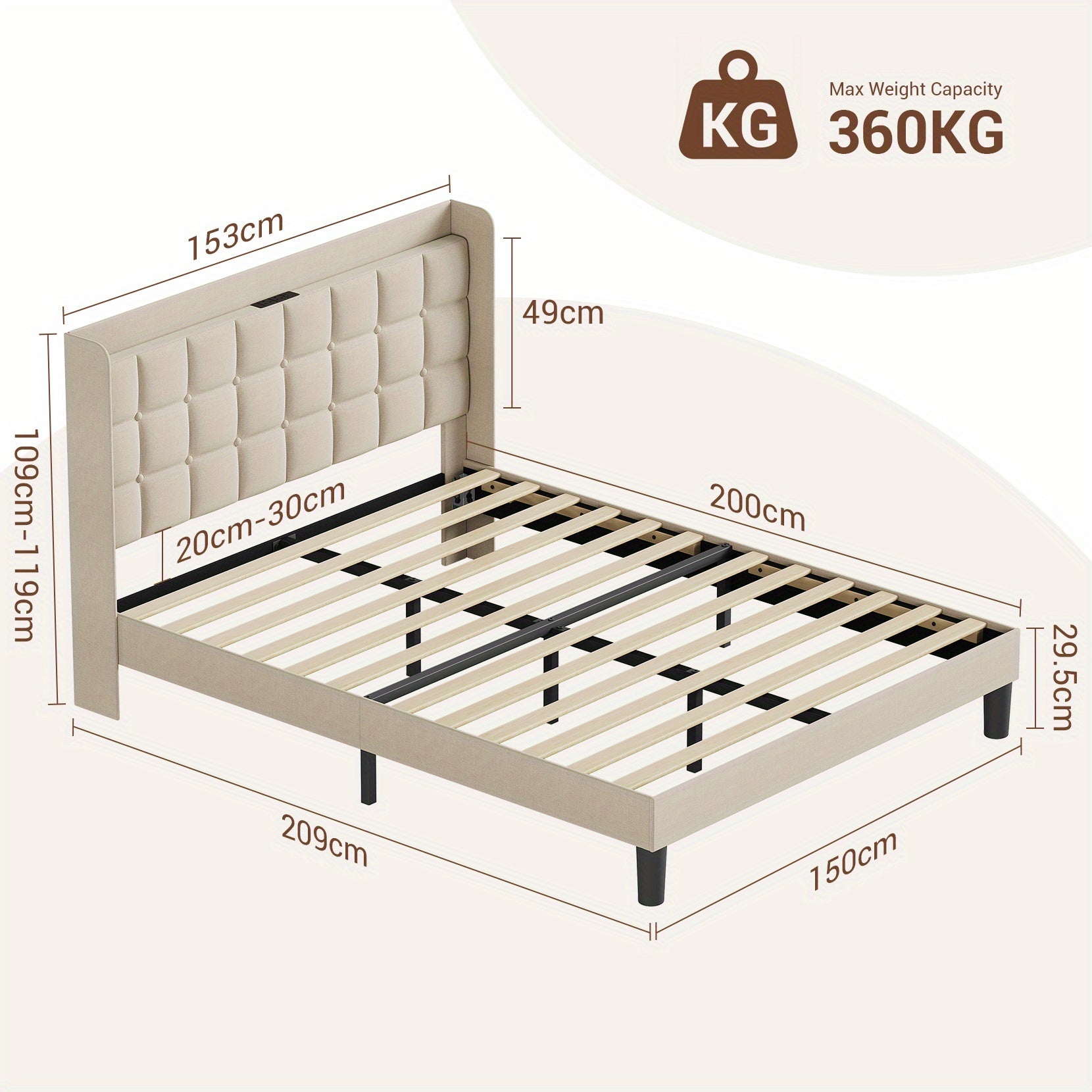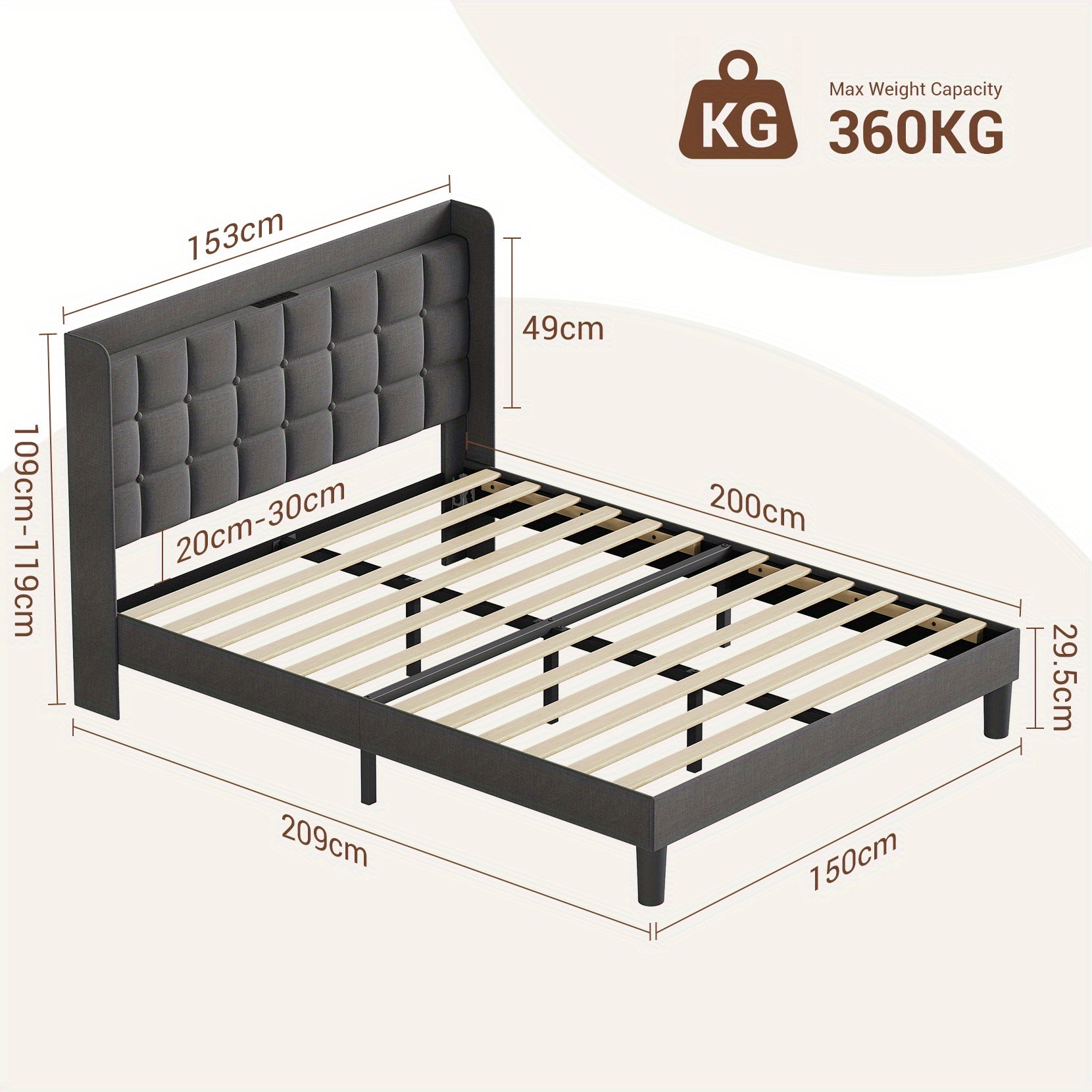 This modern linen-upholstered platform bed frame combines breathable linen fabric with high-density foam padding for superior comfort and support. Its sturdy wooden structure, supported by eight solid legs and twelve durable slats, ensures stability and can hold up to 800 pounds. The adjustable headboard offers three height settings to accommodate mattress thicknesses between 8 and 14 inches, perfect for reading, watching TV, or relaxing. Designed for easy assembly and contemporary small-space living, this bed frame requires no box spring, blending practicality with sleek, durable craftsmanship.