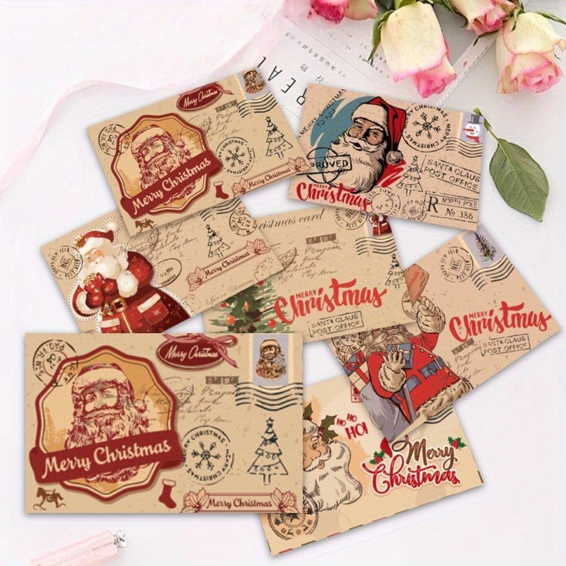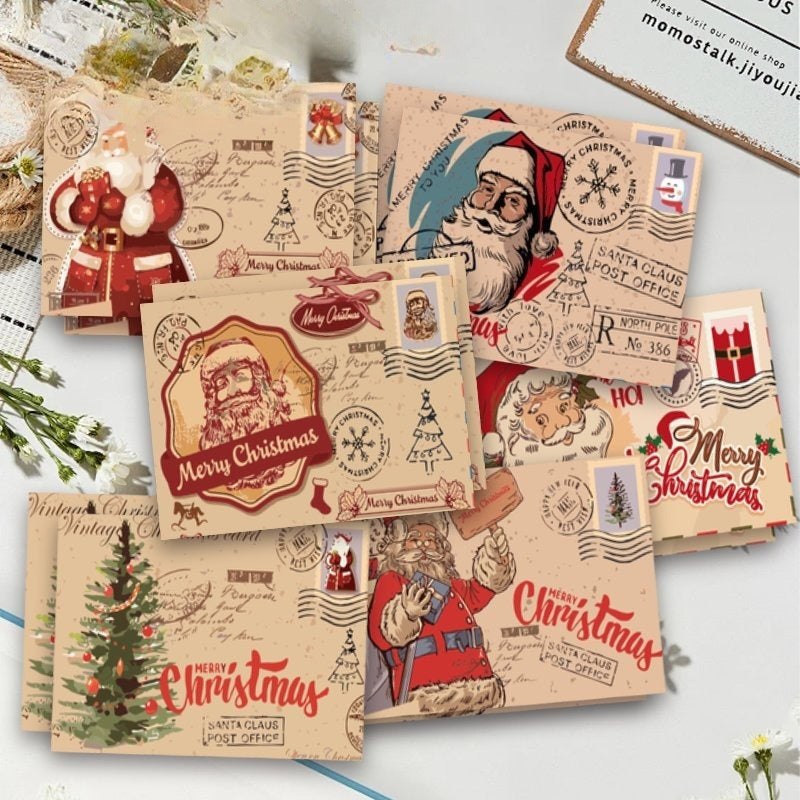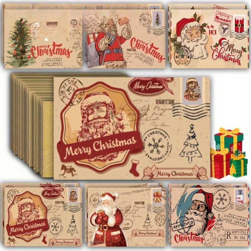 This set includes 12 vintage-style Christmas greeting cards accompanied by envelopes, featuring a variety of charming cartoon animals and classic holiday motifs such as Santa, reindeer, and snowmen. These sturdy paper cards serve as festive thank you notes suitable for family, friends, and colleagues alike. Perfect for both personal and corporate use, they are ideal for seasonal correspondence, bulk gifting, and Christmas stocking fillers. Crafted with quality materials, these versatile cards suit any holiday occasion and recipient.
