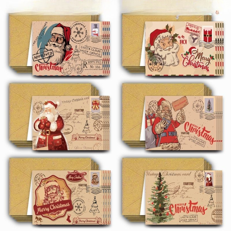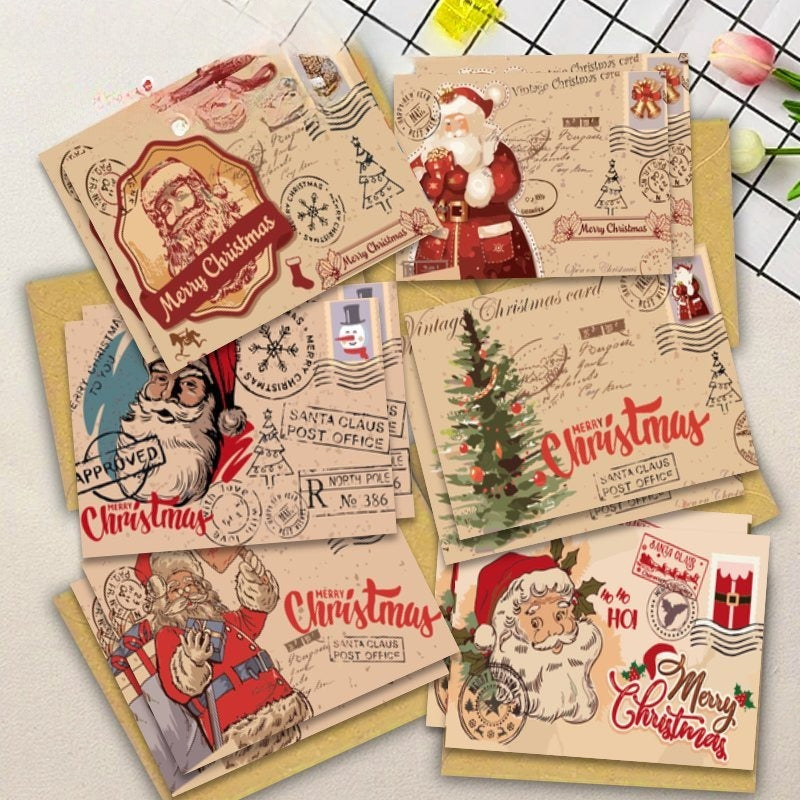 12 Christmas Vintage Cartoon Designed Cards with Envelopes