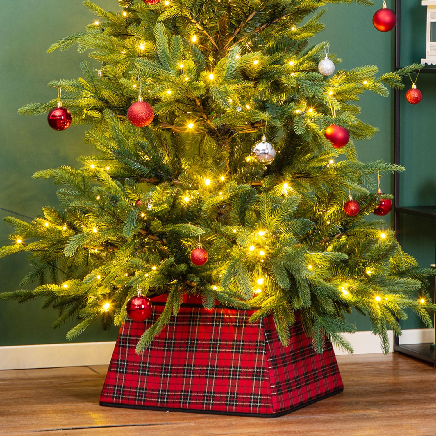 Sized at 48 x 48 x 25cm, it fits most standard tree bases, offering a clean and organized look. Crafted from durable materials, this reusable base cover promises long-lasting use season after season. Combining style and practicality, it’s a versatile addition that keeps your tree base tidy while enhancing your holiday ambiance.