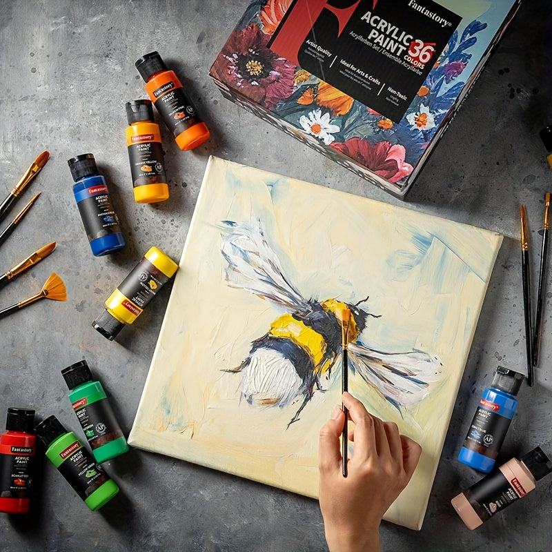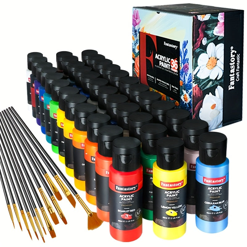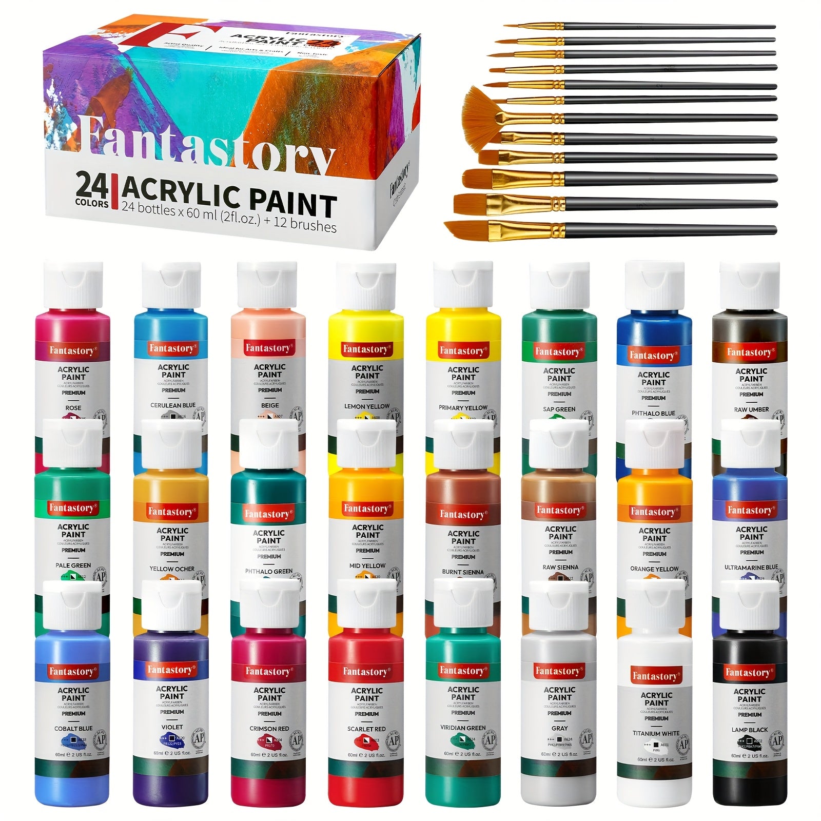 This comprehensive 24-piece acrylic paint set includes 24 richly pigmented classic colors, each in 2oz (60ml) pre-mixed tubes. Designed for versatility, it works seamlessly on various surfaces such as canvas, fabric, rock, glass, stone, ceramic, wood, metal, plastic, and resin. The kit also features 10 high-quality brushes suitable for detailed and textured techniques. Ideal for both beginners and experienced artists, this all-in-one set offers gel-based acrylic paints that support pouring, crafting, and fine art applications.