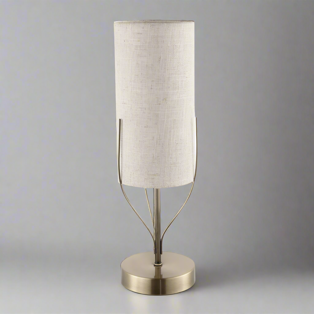 Sleek Antique Brass Lamp with Tall Linen Shade