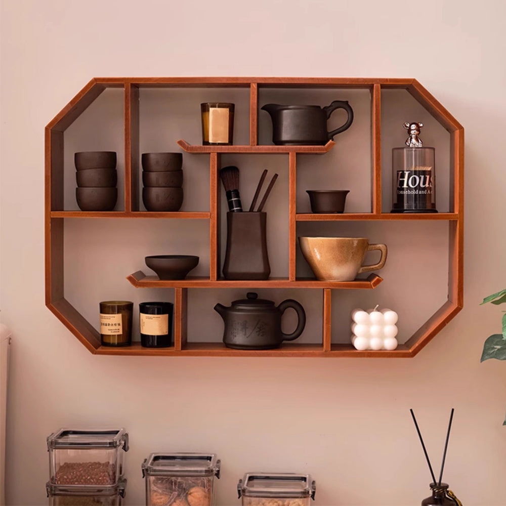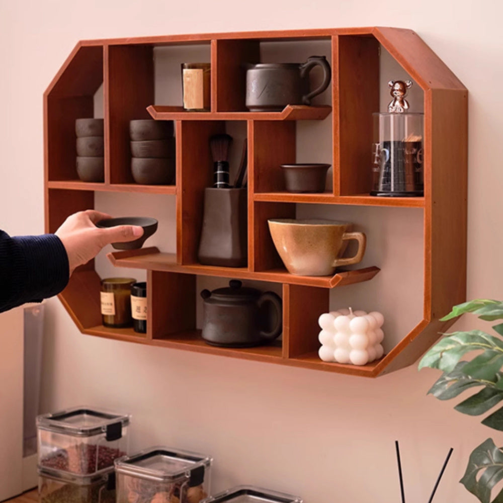This vintage-style floating shelf is crafted from solid wood, providing a sturdy wall-mounted storage solution. Ideal for displaying figurines, tea sets, or decorative items, it enhances entryway or kitchen decor with its functional design. The freestanding installation offers versatile placement, though the item requires assembly. Perfect for adding organized storage with a classic touch to your bedroom or living space.