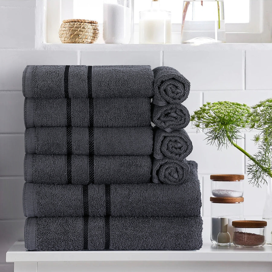 This 10-piece towel ensemble combines practical versatility with refined performance. The collection comprises two bath towels (28"x47"), four hand towels (20"x31"), and four face towels (12"x12"), each crafted to withstand years of regular use. Advanced quick-dry technology paired with exceptional absorbency ensures dependable functionality across diverse settings—from residential bathrooms to hotel suites and spa environments. The lightweight, woven construction maintains its integrity through frequent laundering, while the understated solid aesthetic complements any interior. Equally effective for fitness, camping, and everyday applications. Machine washable for convenient maintenance. A thoughtfully curated gift for discerning users who prioritise durability and performance.