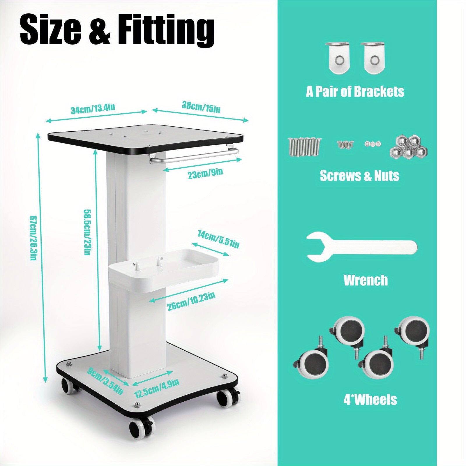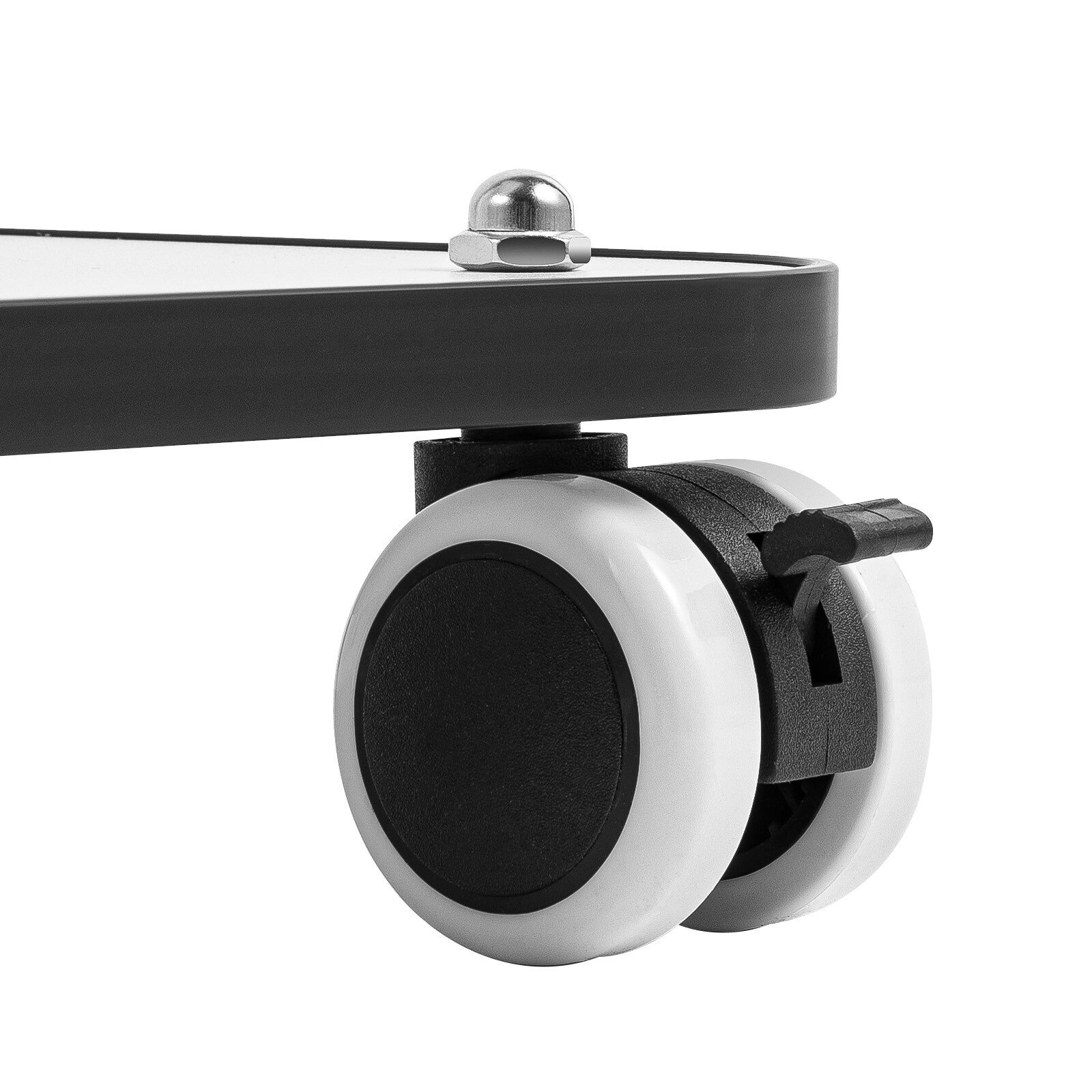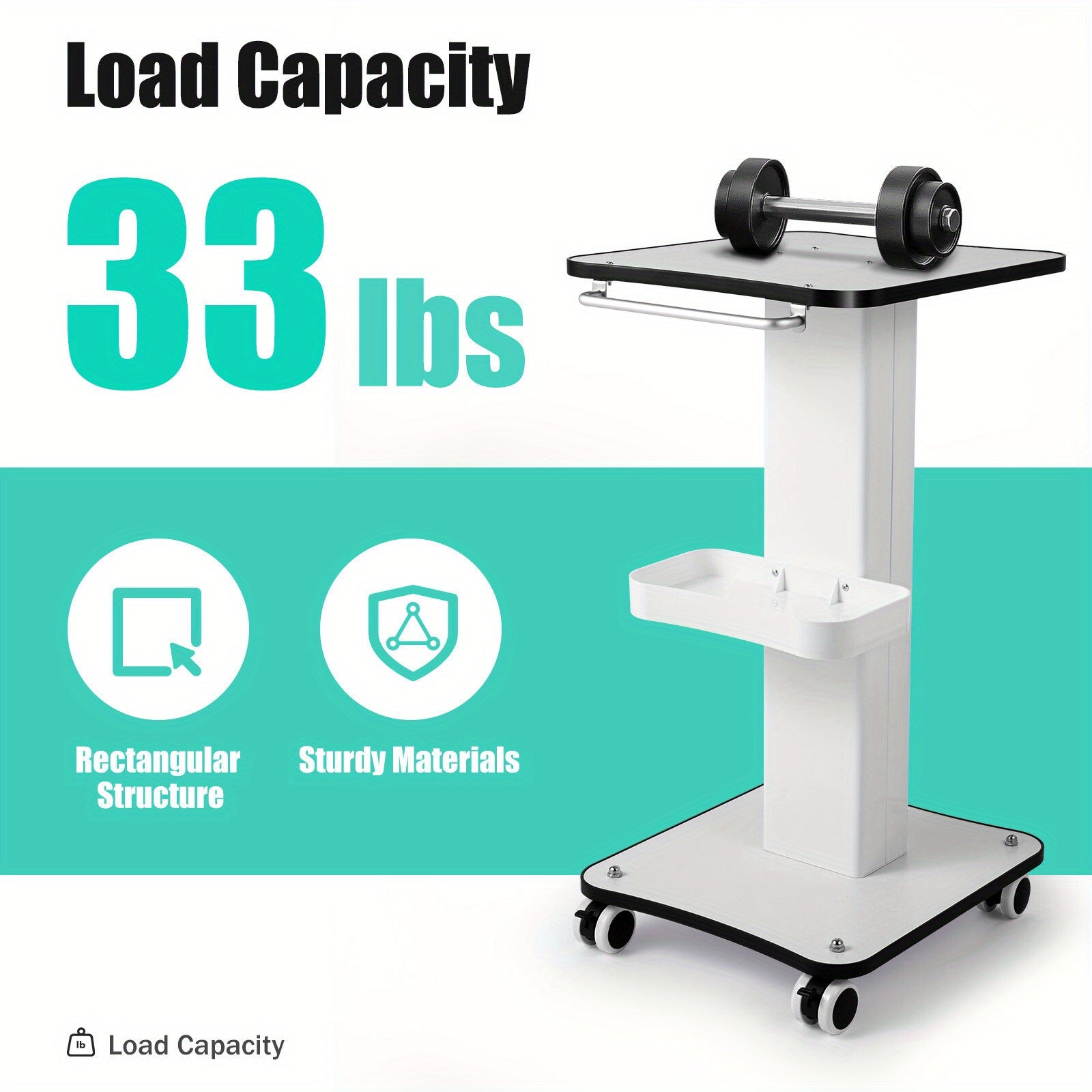 This heavy-duty mobile beauty trolley offers a reliable and efficient solution for salon, spa, or clinic organization. Equipped with 360° locking wheels and a sturdy iron frame, it supports up to 33 lbs, ensuring stable transport and storage of your beauty equipment. Its multi-tier ABS trays provide ample space, with a large top panel ideal for machines and lower trays designed for bottles and tools. Designed in black and white, this durable trolley simplifies workspace management, helping professionals maintain a neat and accessible environment. With reinforced construction, it’s built to handle daily use while enhancing your workflow. You can use it to place most items and reduce the burden of work! Large Capacity: Its three-dimensional space design ensures efficient storage. The top large panel (15*13.4in) can support various beauty equipment; the second layer tray (10.23*5.51in) and the bottom base also provide you with corners that can accommodate a variety of bottles and cans.