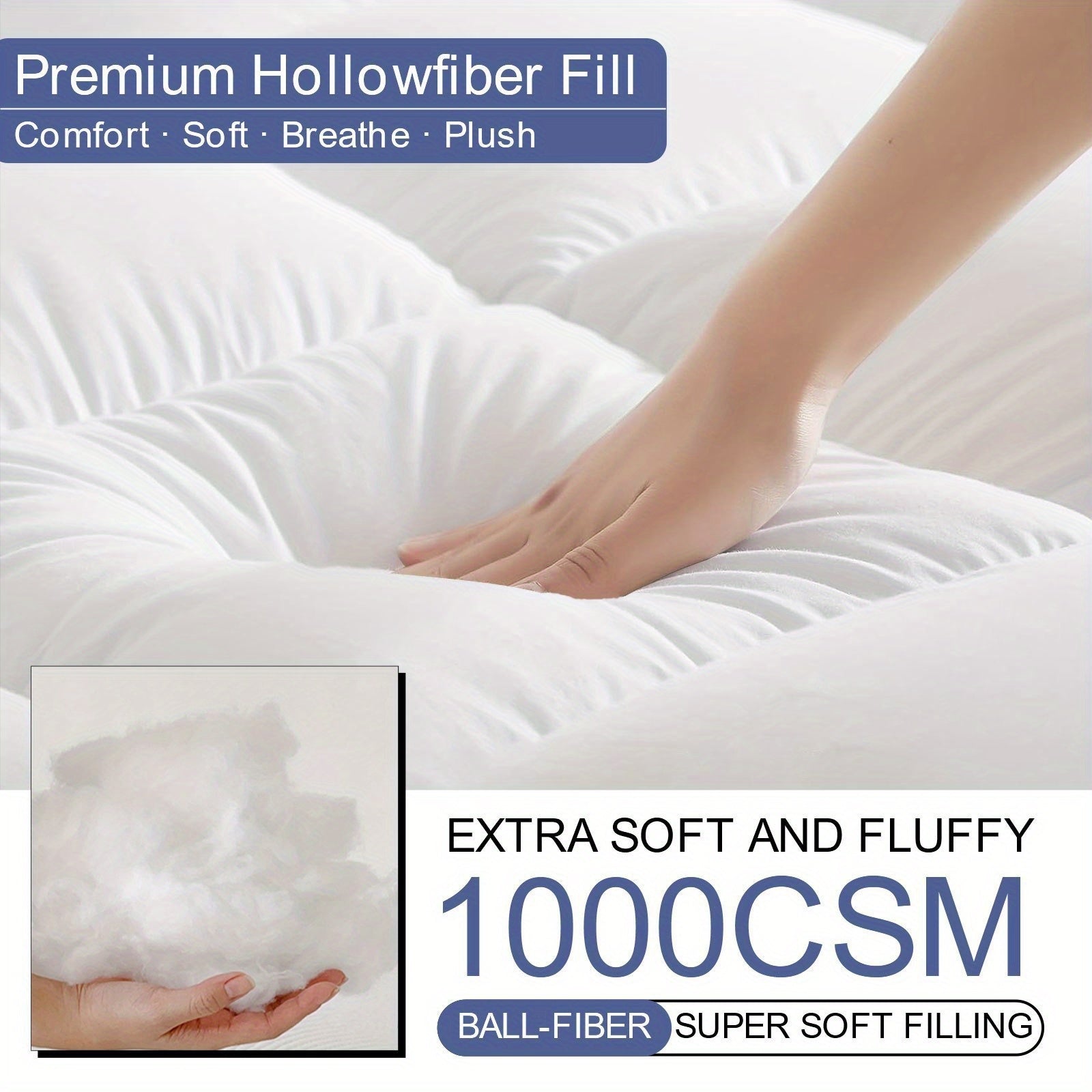 Extra Thick 4Inch Microfiber Filling with Deep Pocket Mattress Topper Anti-Shift
