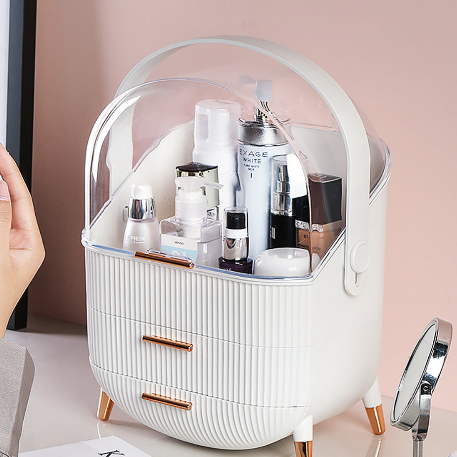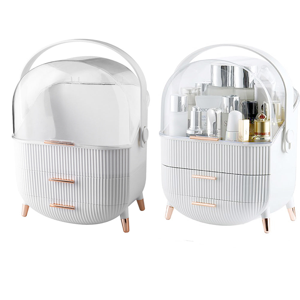 This white jewelry storage box features a 3-tier design measuring 25 x 18.5 x 37 cm, offering ample space for cosmetics, skincare, and jewelry. Its clear top lid provides easy visibility of contents, while the compact footprint fits neatly on dressers or vanities. Crafted from durable plastic with a classic finish, this multifunctional organizer is ideal for storing necklaces, bracelets, watches, and earrings, helping keep your space orderly and accessible. Its versatile design also suits office supplies or general sundries, making it a practical addition to any room.