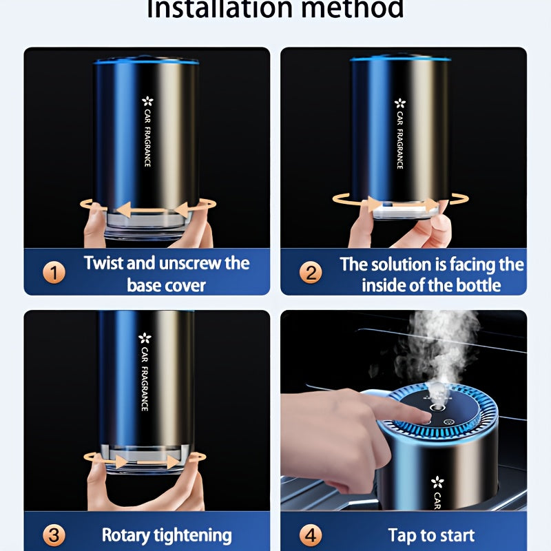 The intelligent car air freshener combines a star-shaped projector light with a USB-rechargeable diffuser, offering adjustable scent intensity and lighting effects that sync with music for a captivating atmosphere. This stylish accessory doubles as a thoughtful gift. For best results, insert the essential oil and let it absorb for a minute before use. If the scent weakens, inspect and gently clean the nozzle without mixing water into the oil. Use only the specified car fragrance solution to ensure effective diffusion and prevent clogging. Detailed scent and capacity information can be found in the product specifications.