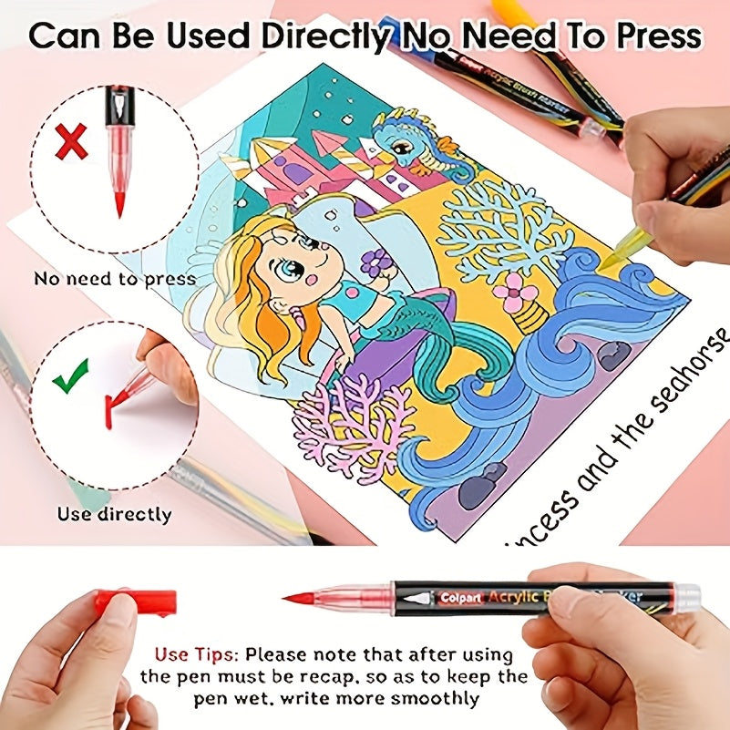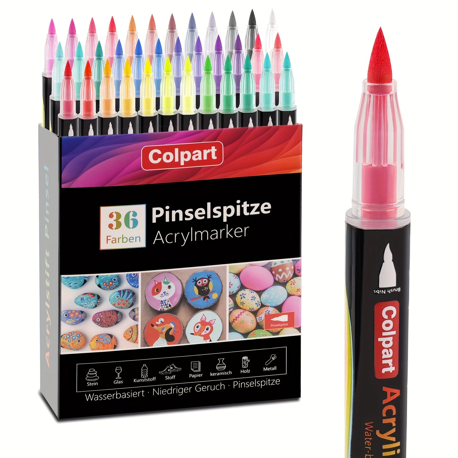 This multi-colour acrylic paint brush pen is designed for versatility across a range of surfaces including wood, ceramic, glass, stone, and pebbles. Featuring a medium plastic tip, it offers controlled application ideal for detailed artwork and handicrafts. The acrylic-based ink provides vibrant, long-lasting colors suitable for professional art projects as well as seasonal crafts like Easter and Halloween decorations. Its durable design and expert level precision make it an excellent tool for both adult artists and students, supporting creative expression in a variety of mediums from fine drawing to decorative painting. The pen glides effortlessly, producing consistent and reliable ink flow without interruptions. Using the brush tip creates a unique stroke effect, allowing for easy variation in line thickness.