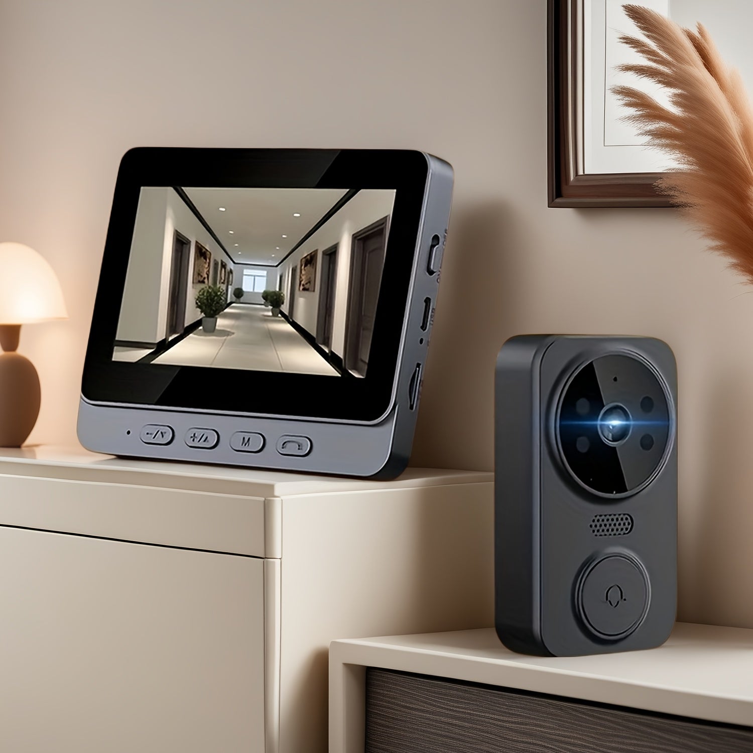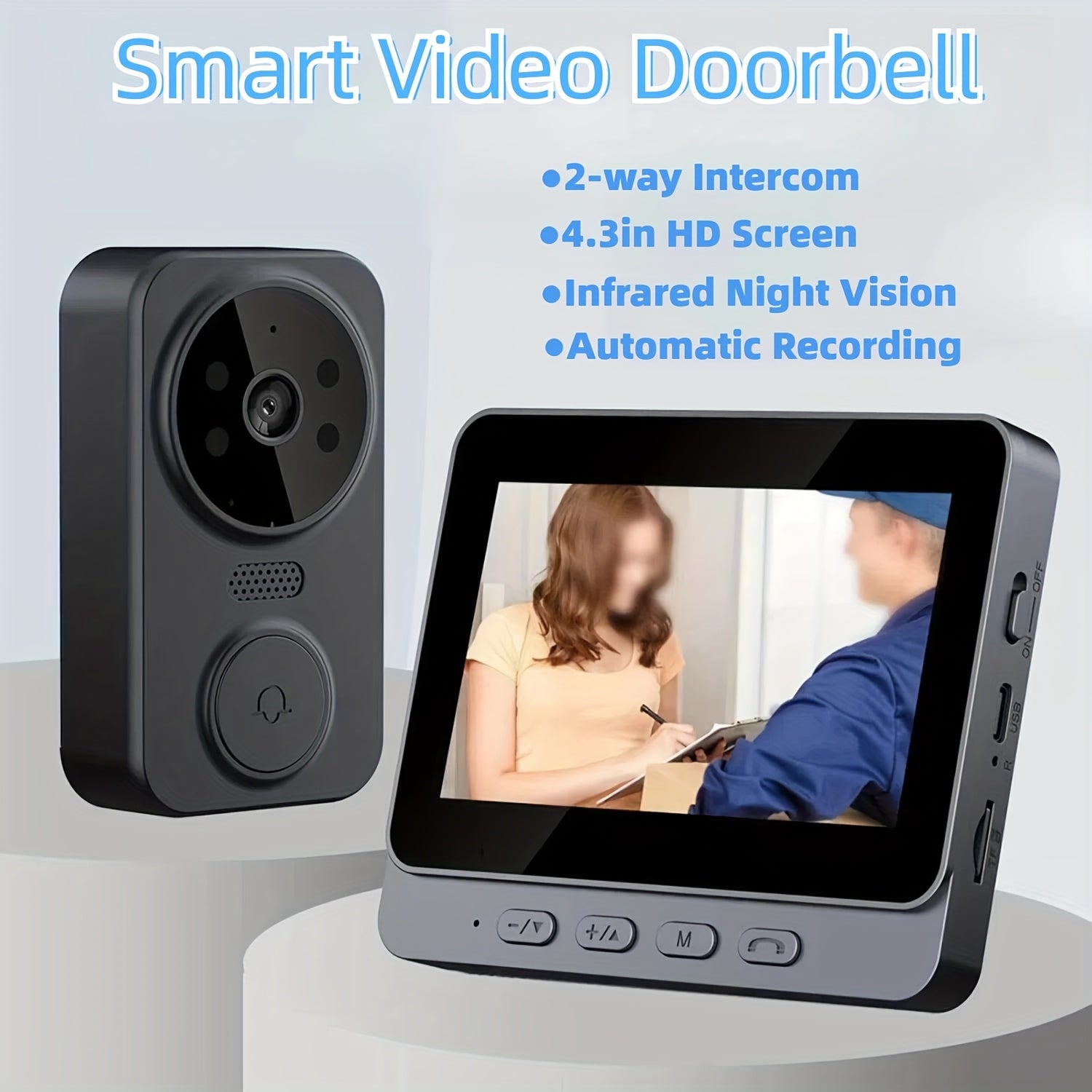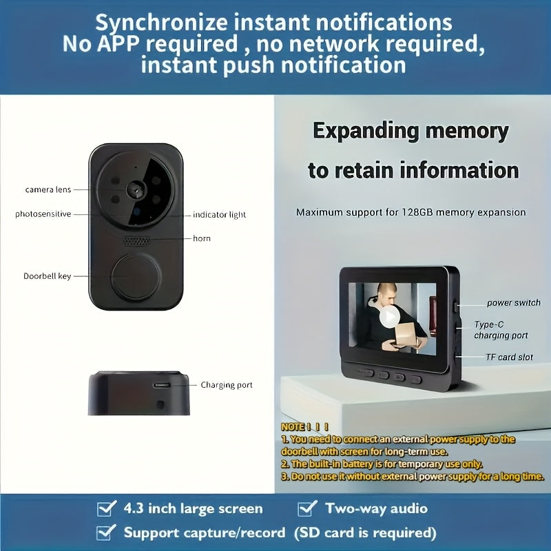 The Ring Doorbell Camera offers a reliable and intelligent solution to home security with its 4.3-inch HD display and 720p high-definition video quality. Equipped with voice and visual intercom features, it enables seamless two-way communication with visitors at your door. Its infrared night vision ensures clear monitoring even in low-light conditions, enhancing security around the clock. The camera is battery powered with an 800mAh rechargeable lithium battery, providing convenient cordless installation without the need for plugs. Designed for wall mounting, it integrates easily into your smart home setup, acting as a vigilant guard for your property.