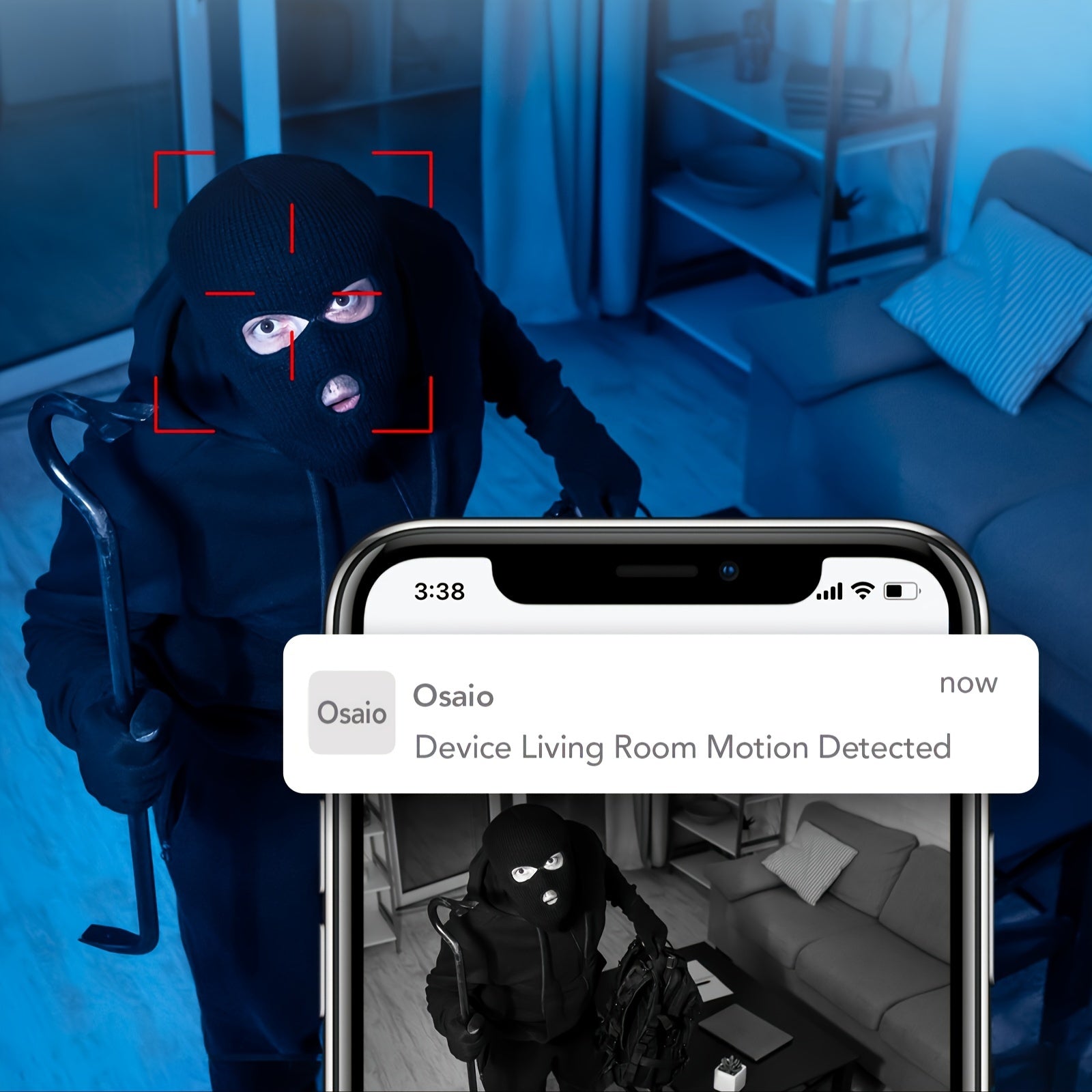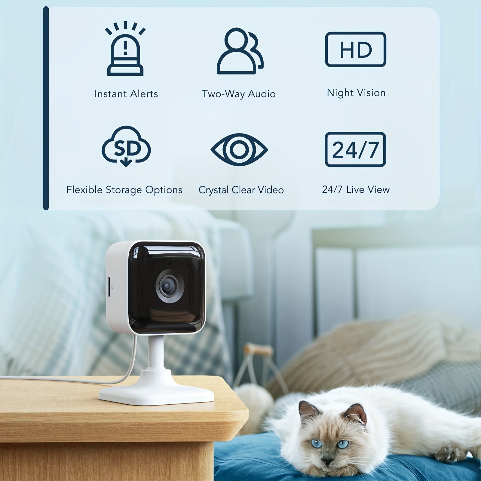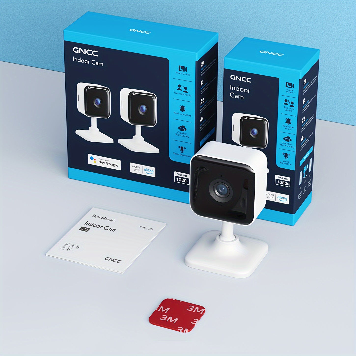 The GNCC 1080P Indoor Security Camera delivers sharp HD video and infrared night vision, capturing clear images up to 26 feet in darkness. With advanced motion and sound detection, it promptly notifies you via the Osaio app, enabling remote viewing of live or recorded footage. Its two-way audio feature allows direct communication with family, friends, or pets from any location. Designed for indoor use, the camera supports cloud and SD card storage, offers secure multi-user access, and provides dependable home security with professional-grade performance.