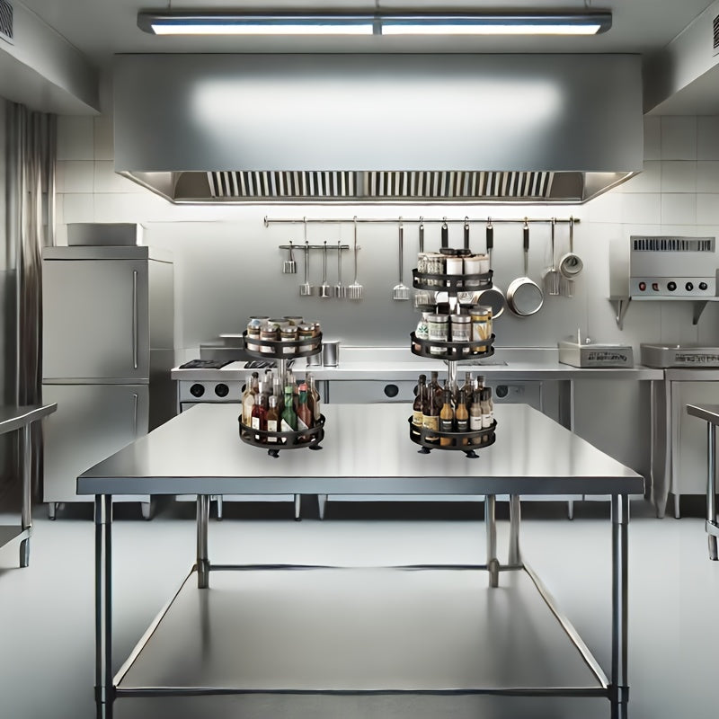 Tiered Multipurpose Rotating Kitchen Organiser Crafted from Carbon Steel