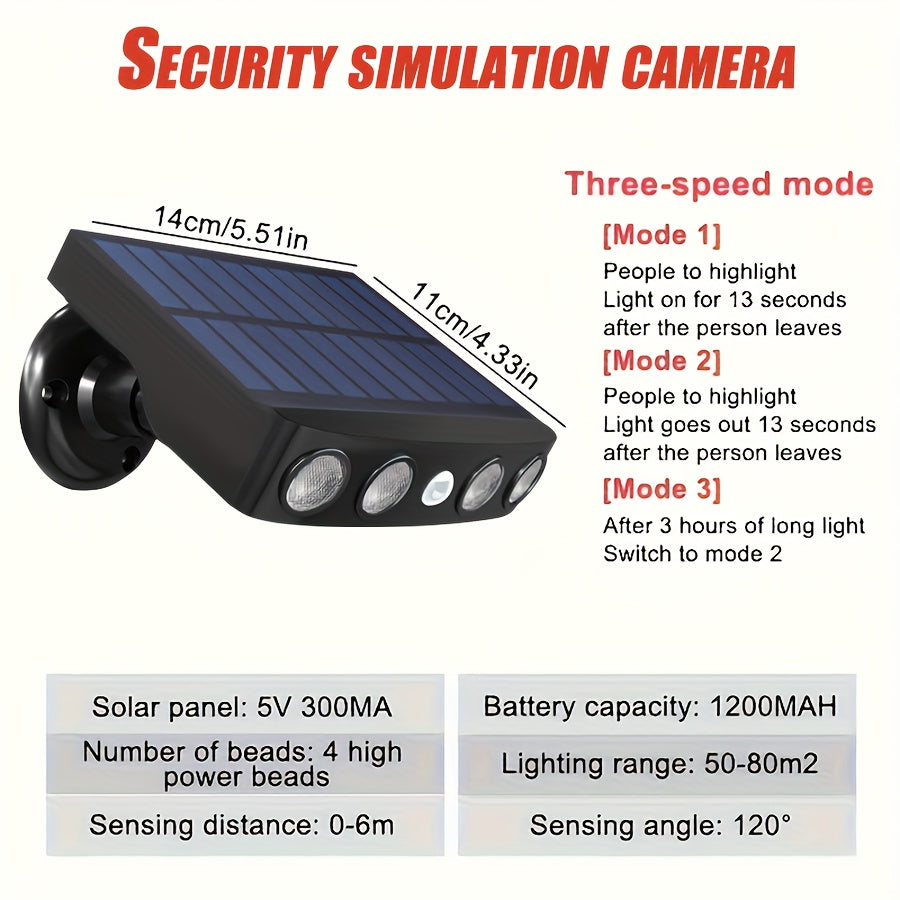 This solar-powered motion sensor light combines practical engineering with straightforward functionality. The IP44-rated housing withstands outdoor weather, while the 1200mAh lithium battery powers 350–500 lumens of output when movement is detected. Coverage spans approximately 30m², making it suitable for entry points, patios, and garden areas. The detachable mounting system enables quick installation without electrical work, and push-button operation keeps setup simple. Low-voltage operation at ≤36V ensures safe handling, with zero ongoing maintenance demands. An ideal choice for homeowners seeking reliable perimeter illumination powered entirely by daylight.