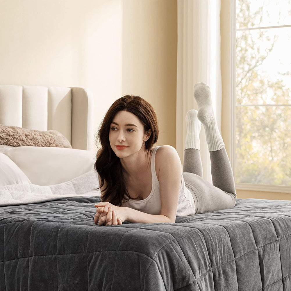 7.7lb-25lbs Thick Heavy Cozy Sherpa Fleece Reversible Weighted Blanket, All-Season Deep Sleep, Premium Glass Beads, Machine Washable, Contemporary Design, Relaxing Blanket for Bed, Couch & Camping, Blanket for Sofa, Bed, Gift for Mom, 155*200cm, 9.1kg weight